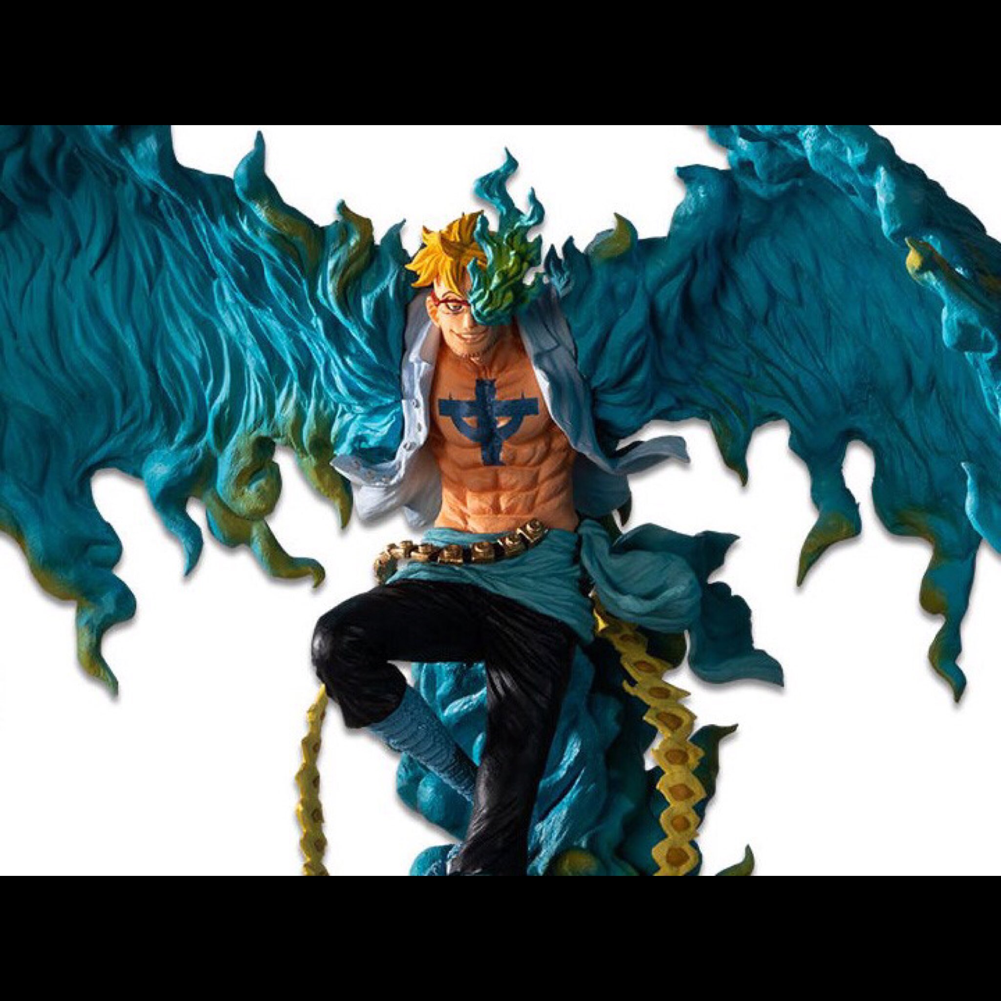 One Piece Figurine Marco Ex Devil dans la gamme Ichibansho du fabricant Bandai. Superbe statuette en PVC, taille: 28 cm sur socle décor de Marco Phoenix.